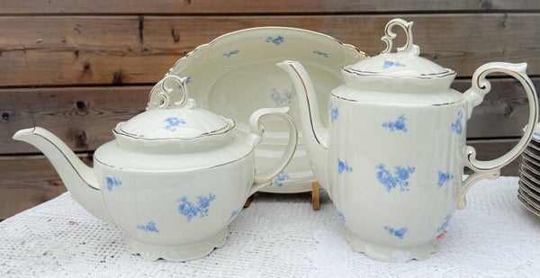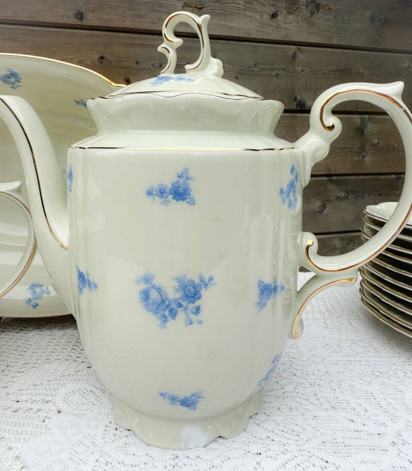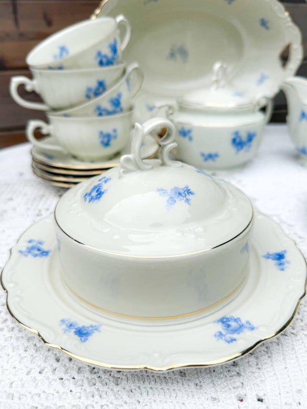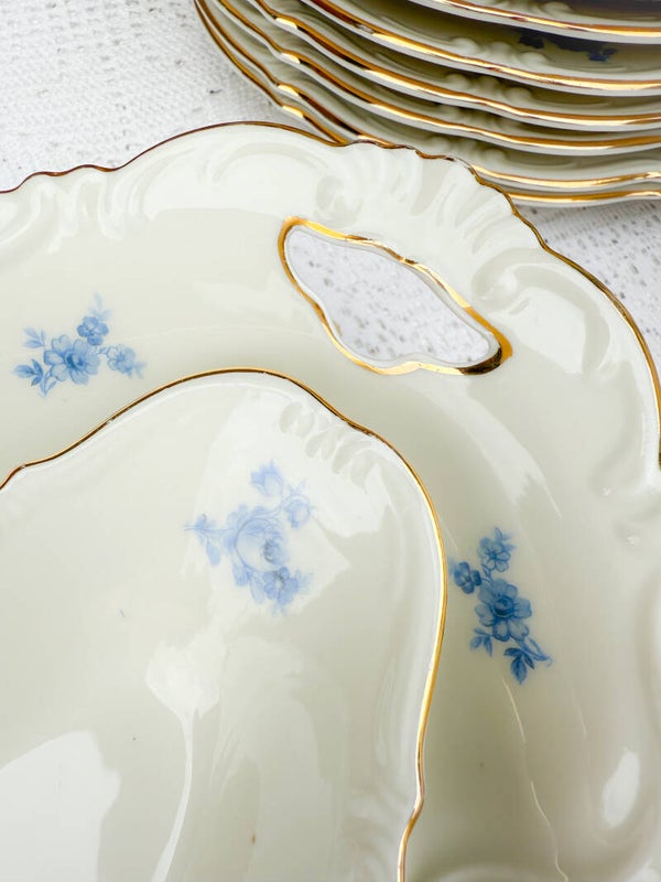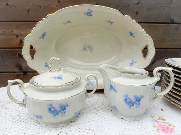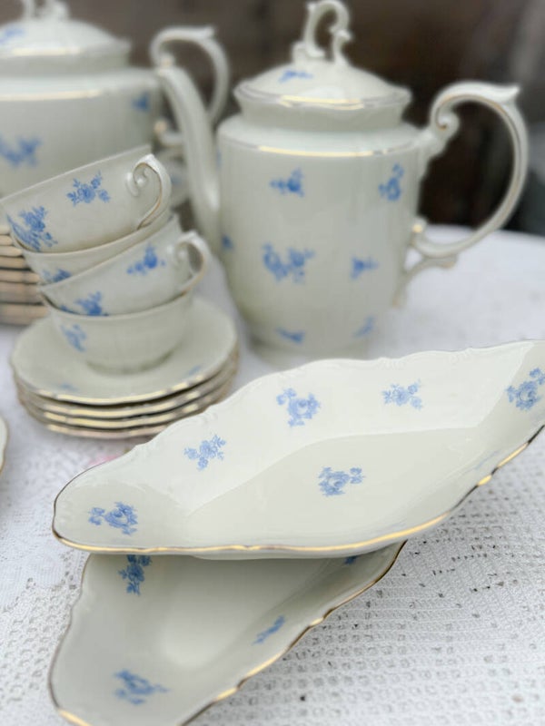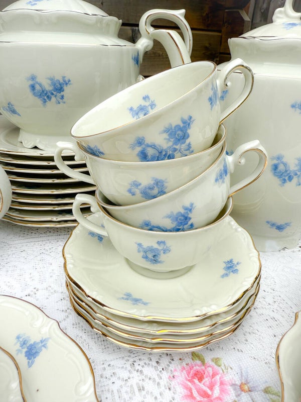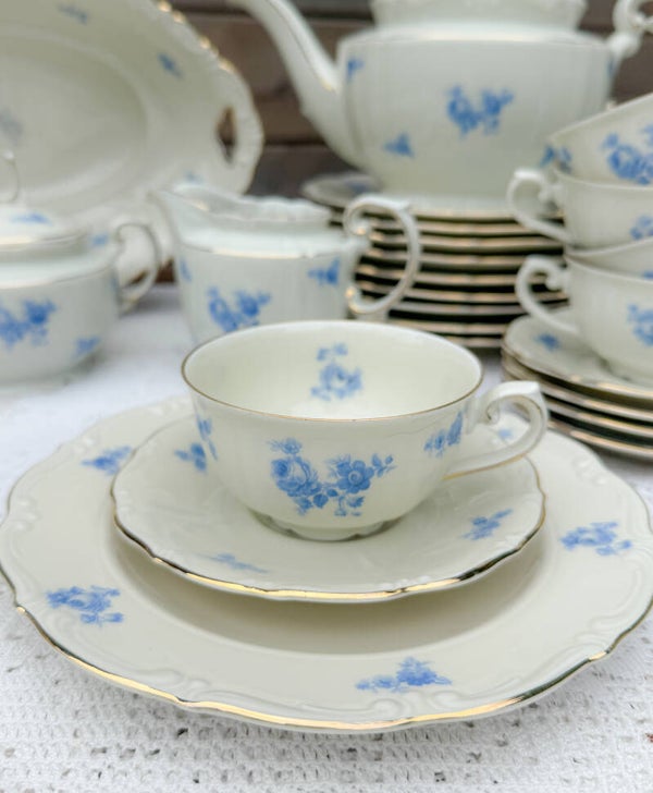 Brocant ontbijtservies high tea servies kopjes bordjes Bavaria blauw