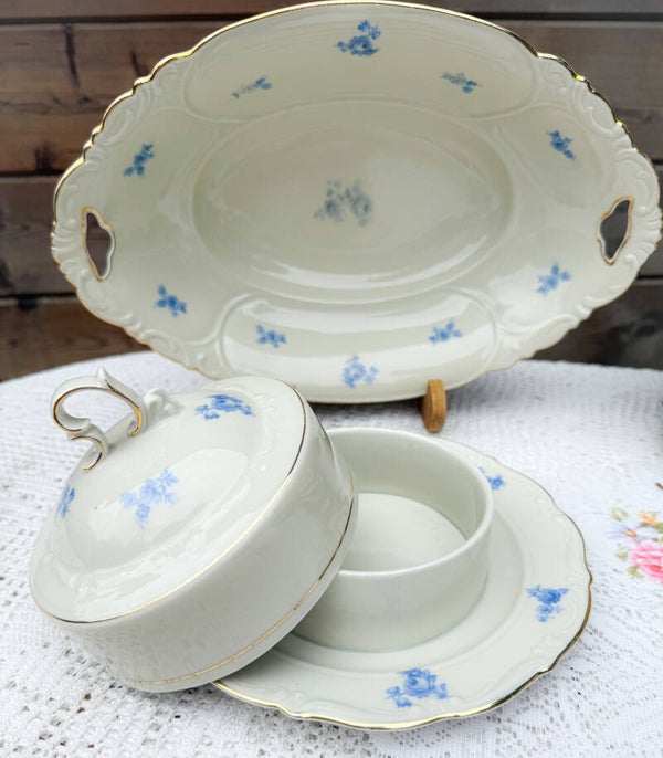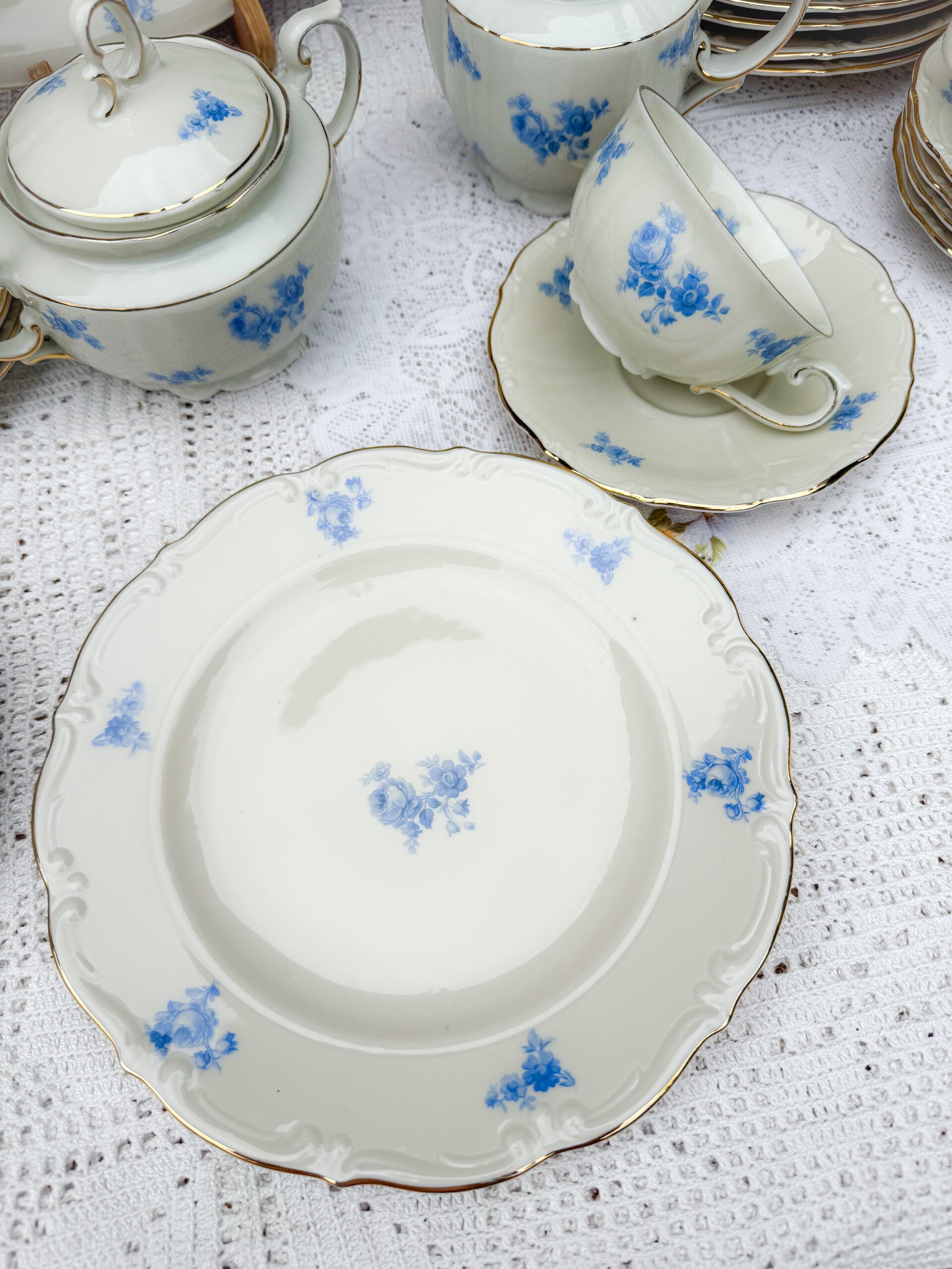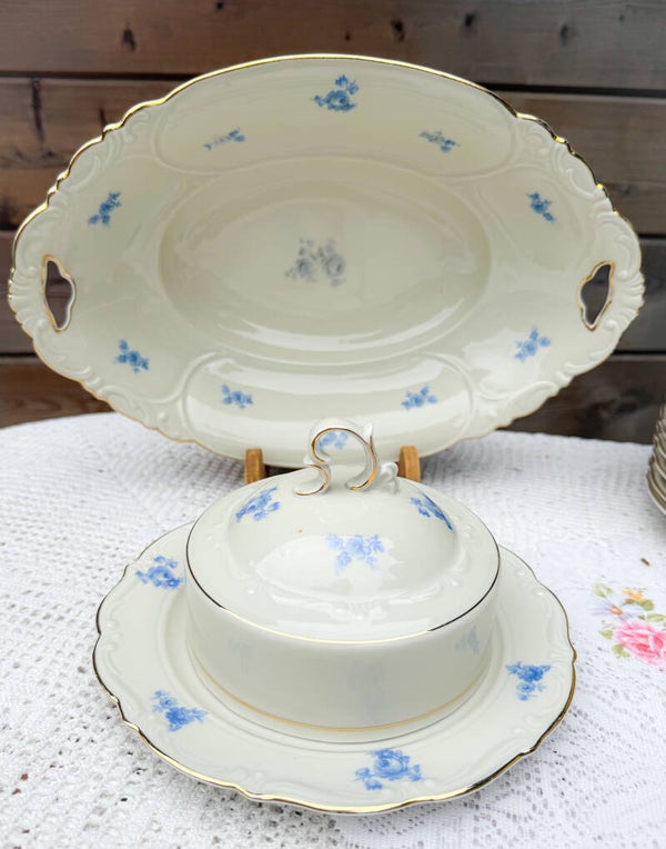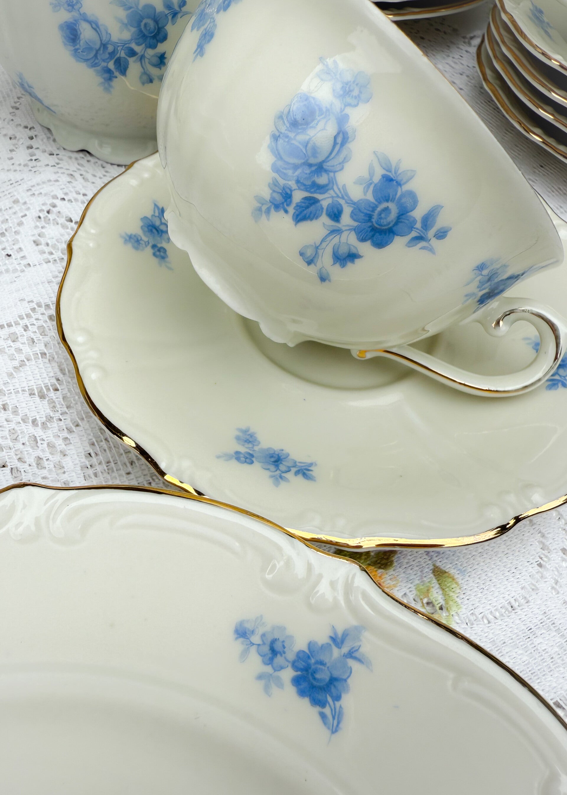 Brocant ontbijtservies high tea servies kopjes bordjes Bavaria blauw