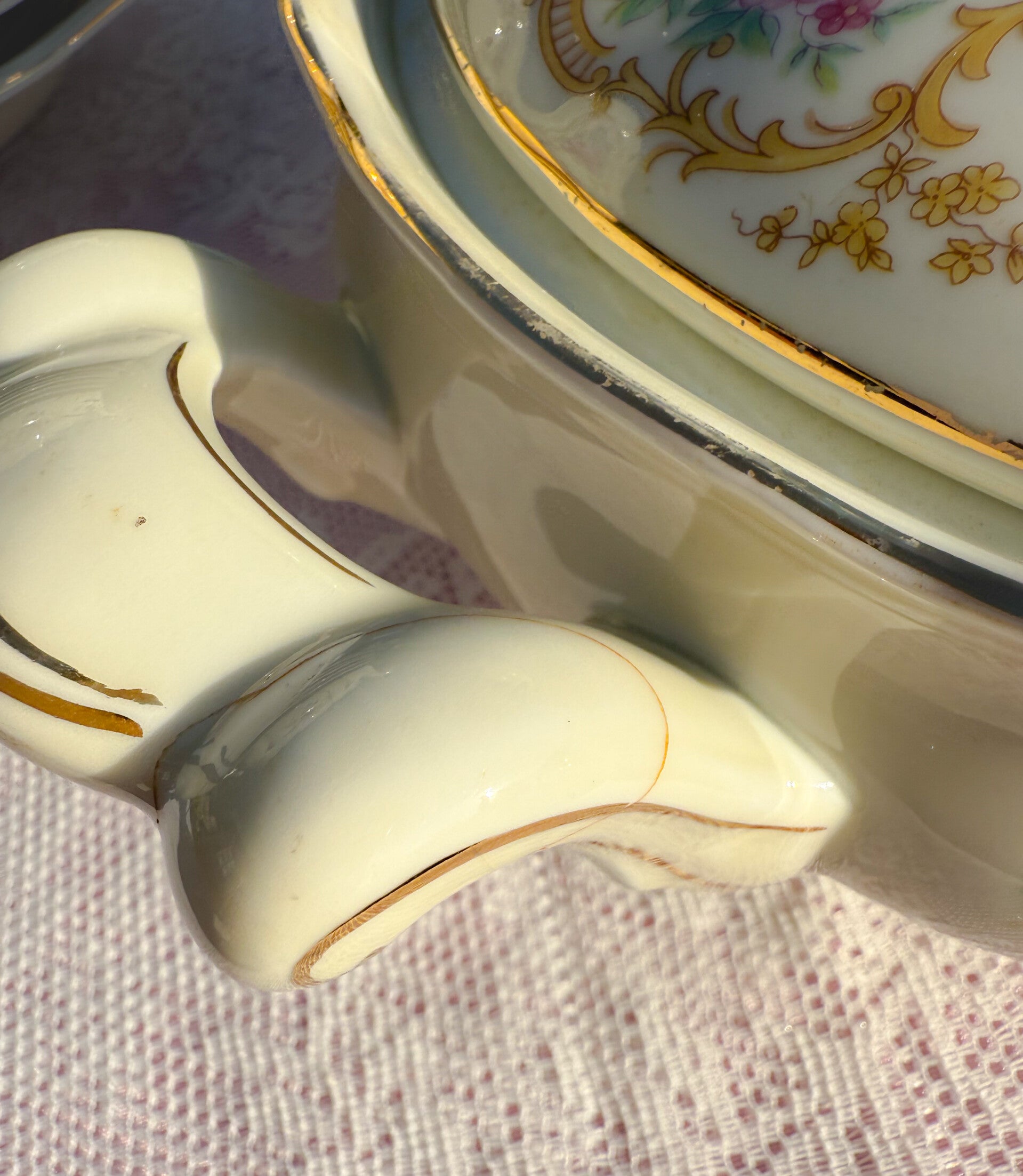 De groenteterrine komt gratis mee, deze heeft op de jaren breukjes opgelopen, maar zijn geplakt en hebben de handwas 🫧gewoon doorstaan, zie laatste 2 foto’s.
