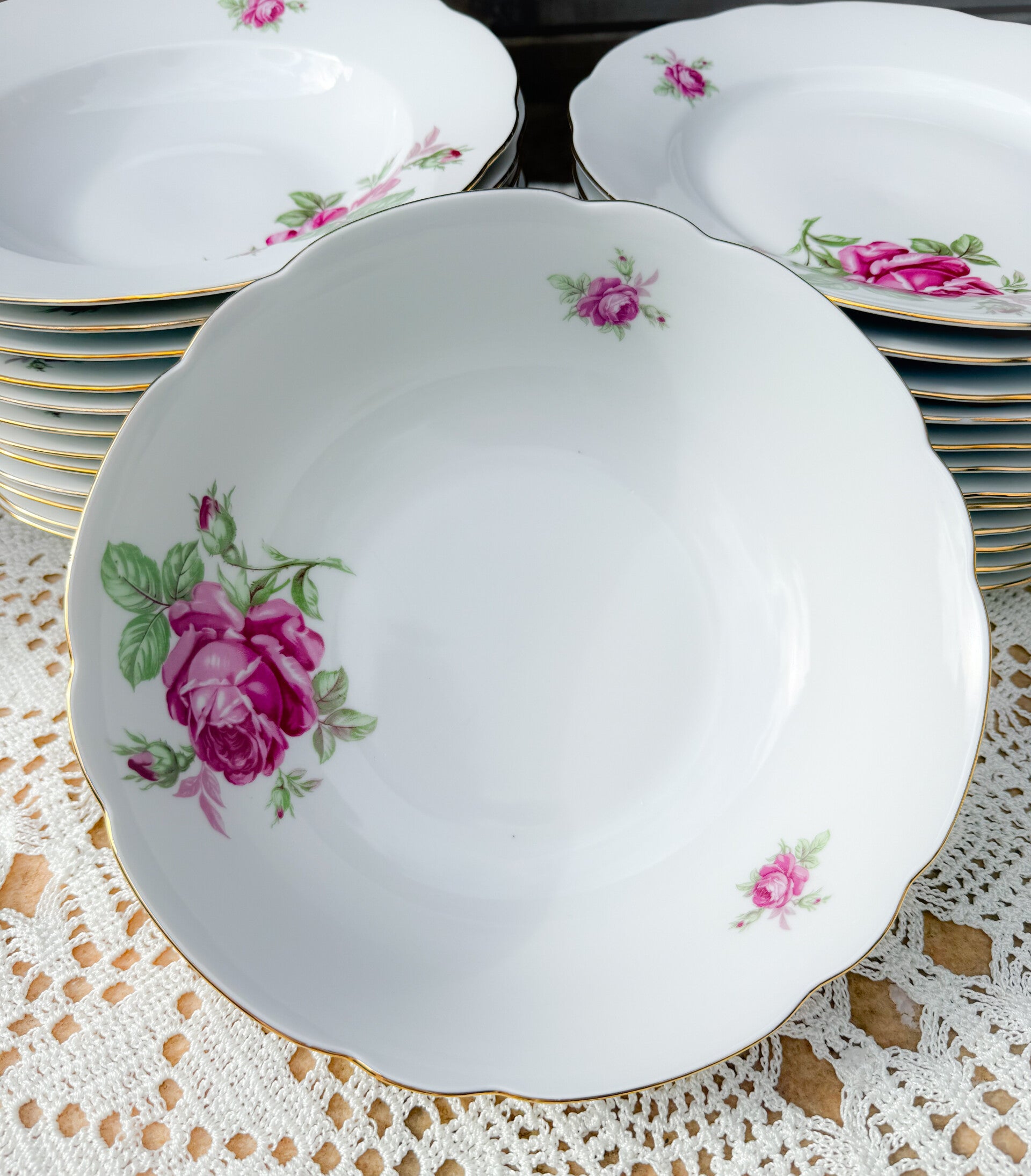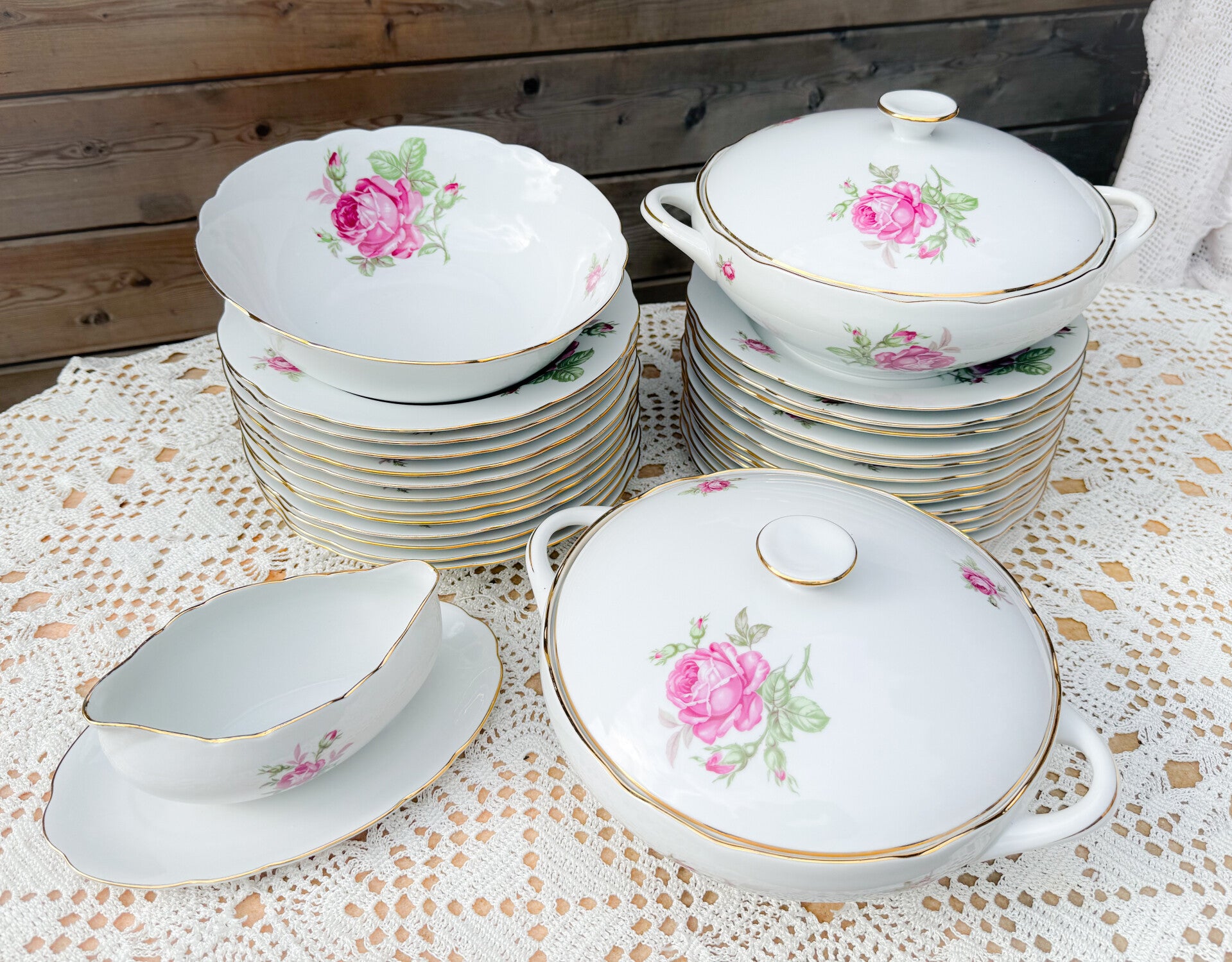 Kleur is wit met romantisch roze roosmotief en een goudkleurig randje, wat nog heel mooi is.